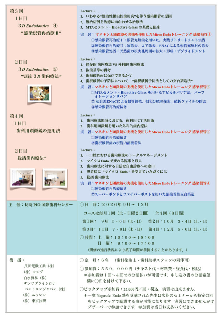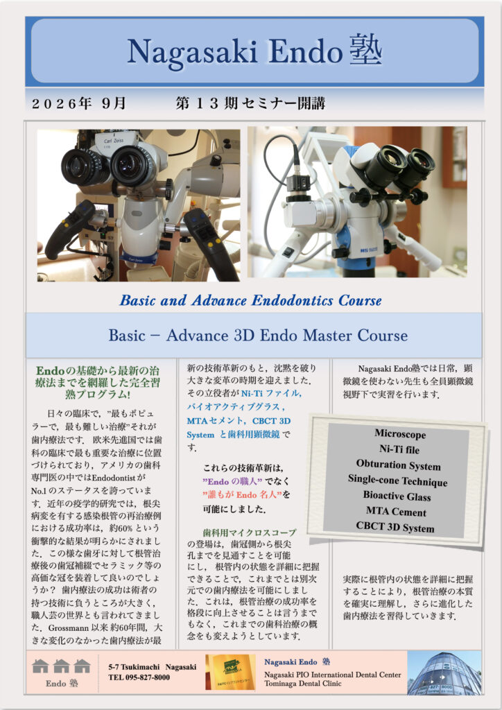第13期セミナー長崎Endo塾2026年9月開講 受付を開始いたしました。