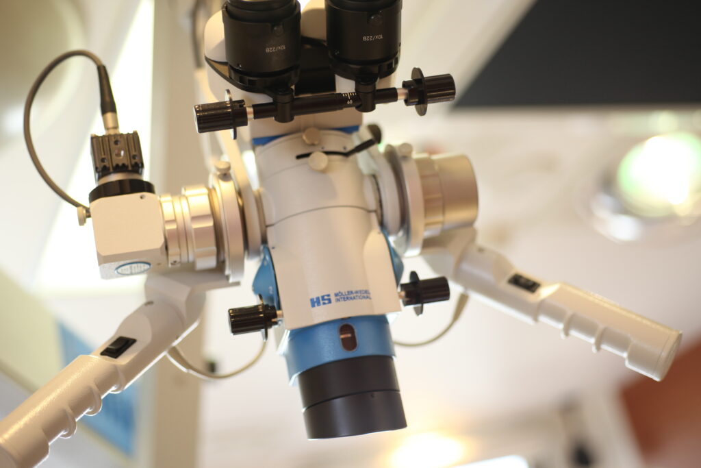 当院では、ドイツ・Möller-Wedel社製の歯科用マイクロスコープ(手術用顕微鏡)を導入し、 最大約20倍の拡大視野のもとで根管治療を行っております。